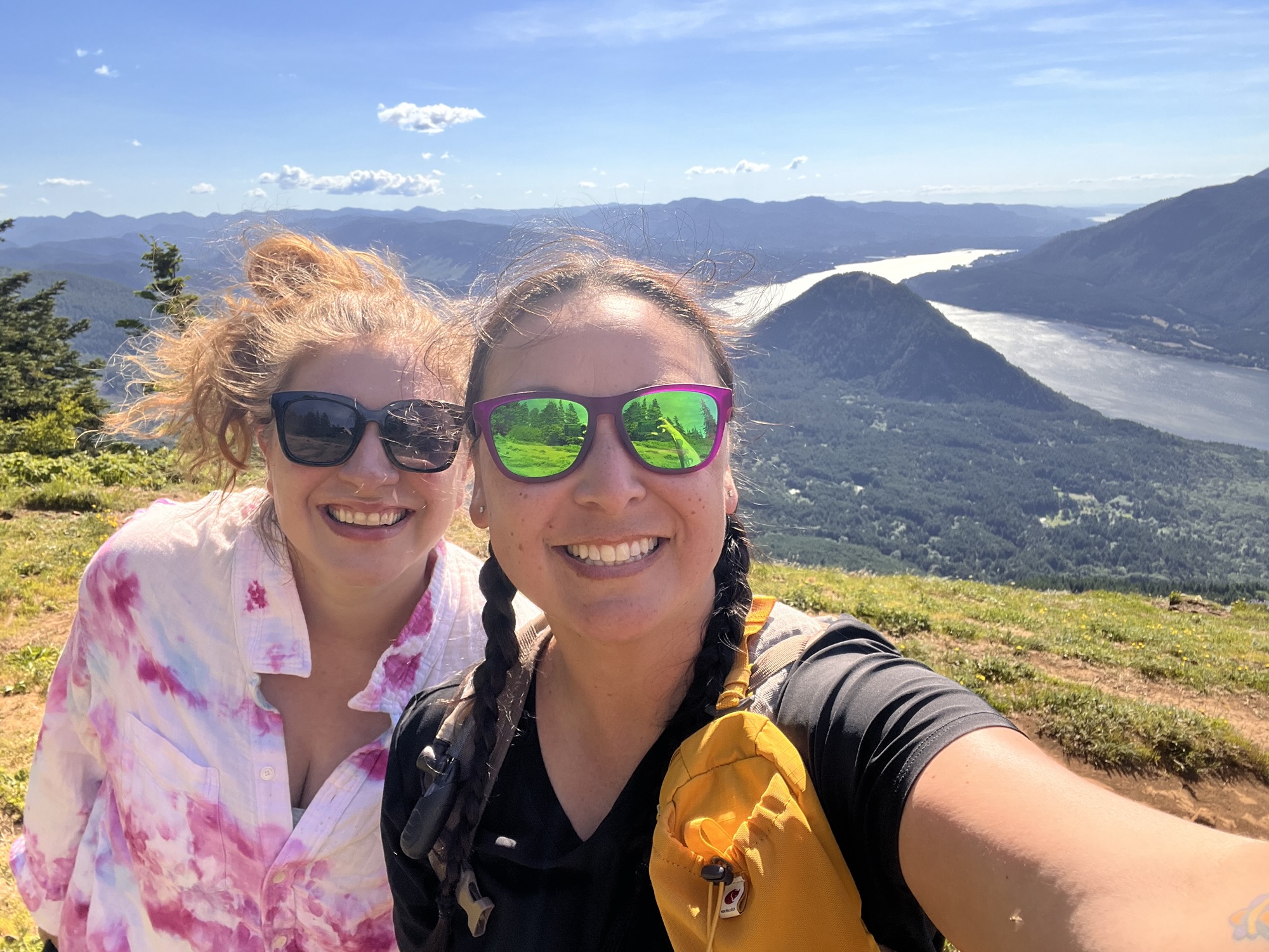 Believe it or not, that wasn’t the end of the hike. The final stretch was another segment of steep incline until we made it to the summit, where we sat in the grass, ate our Uncrustables, and gazed out at the views before us. Mt. Hood was poking its head out above Mount Defiance to the south, and Mt. Saint Helens stood to the north. I felt amazing and accomplished. I hadn’t had this feeling since I completed my Spartan Sprint race in Lake Tahoe 10 years ago, during a big transition in my life. And here I am 10 years later, at another transition in my life. My kids are now grown, my career is in a solid spot, and my marriage is only getting stronger by the day. I’m moving into a new chapter of life where I can adventure more and do the things I haven’t been able to do prior because I was raising kids, trying to make a career, working on my mental health, and discovering who exactly I was. Sitting at the top of Dog Mountain with jelly smeared on my cheek and sweat dripping down my back, it hit me. Climbing this mountain was difficult (cue Miley Cyrus’ The Climb song); I wanted to give up several times. My body was tired, and I questioned myself constantly, but something in me kept saying, keep going. And I did. And when I reached the top, it was all worth it. Just like the last 20 years of my life. Miley was right, it’s all about the climb.